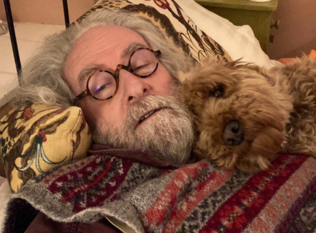 At least if Himself takes a daytime nap I can use him as a pillow. He’s certainly plumped up a bit in the past few months (ha ha). The other advantage, I’ve discovered, is that if Himself sleeps during the day, he wakes up during the night and goes downstairs to make Hot Chocolate, which means he can let me out into the garden to bark at the moon and generally disturb the neighbourhood.